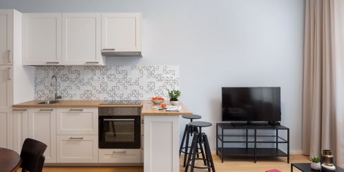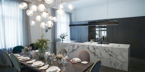 Dominantou holešovického bytu se stala kuchyň se zalitými kameny!
