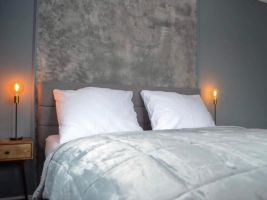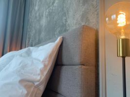 V ložnici naopak využila takzvaný Focal point, tedy prvek na zdi s ohraničením lišt.