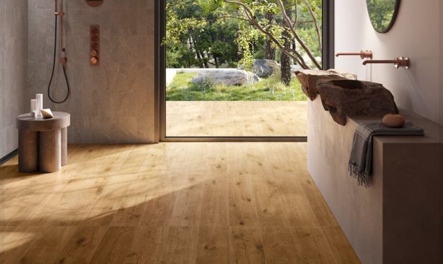 Například dlažba Origin od výrobce Ermes aurelia věrohodně imituje přírodní materiál, který se hodí do všech moderních interiérů. K dispozici je ve 4 odstínech od světlé až po tmavší - acero, rovere, quercia a ebano. Seženete ji u prodejce ProCeram.