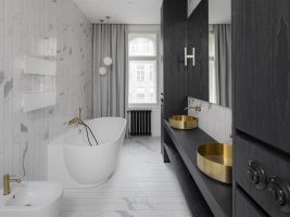 V bytě o dispozici 5+kk najdeme mnoho moderních nadstandardních prvků, střídmé barvy a kvalitní materiály. „Majitelé dlouhou dobu žijící v zahraničí si tento byt pořídili s tím, že zde budou trvale bydlet. Během rekonstrukce se ale životní plány změnily, a proto byt zůstal k pronájmu,“ vzpomíná architektka Hana Davidová.