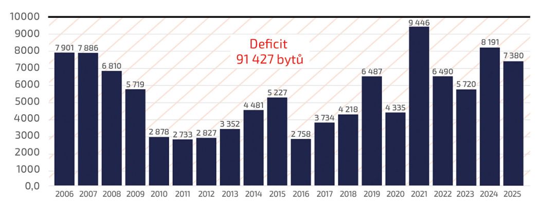 • Bytový deficit se blíží 100 tisícům bytů