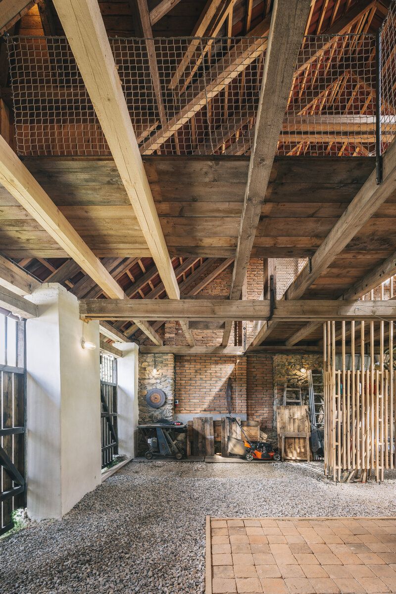 Díky tomu, že se původně jednalo o kovárnu, je prostor stodoly abnormálně široký i vysoký. Původní prostor byl neprůchozí a tmavý. „Od počátku jsme věděli, že chceme objektu vrátit jeho velkorysost a přinést do něj světlo, aby se mohl nadechnout stejně tak prostor i člověk, který se v něm nachází. I díky tomu, že klienti neměli nouzi o místo, měli jsme volnou ruku a mohli jsme hodně ubírat a málo přidávat,“ dodávají architekti.
