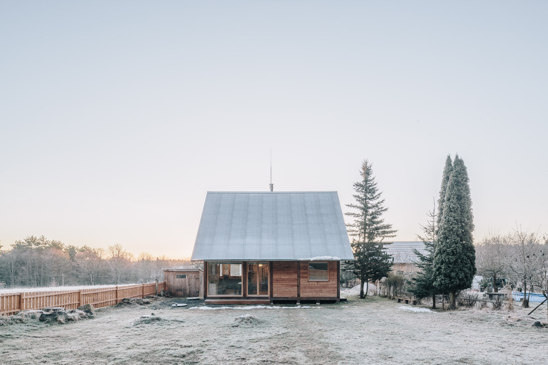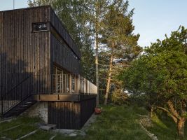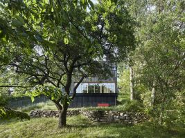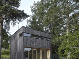 Výsledkem úsilí architektů je dvoupodlažní chata s obytnou plochou 60 m2 a s jednoduchými liniemi ve tvaru kostky. Stavba je ideální pro rodinnou rekreaci a navíc nabízí majitelům krásné výhledy do okolní vzrostlé zahrady.