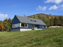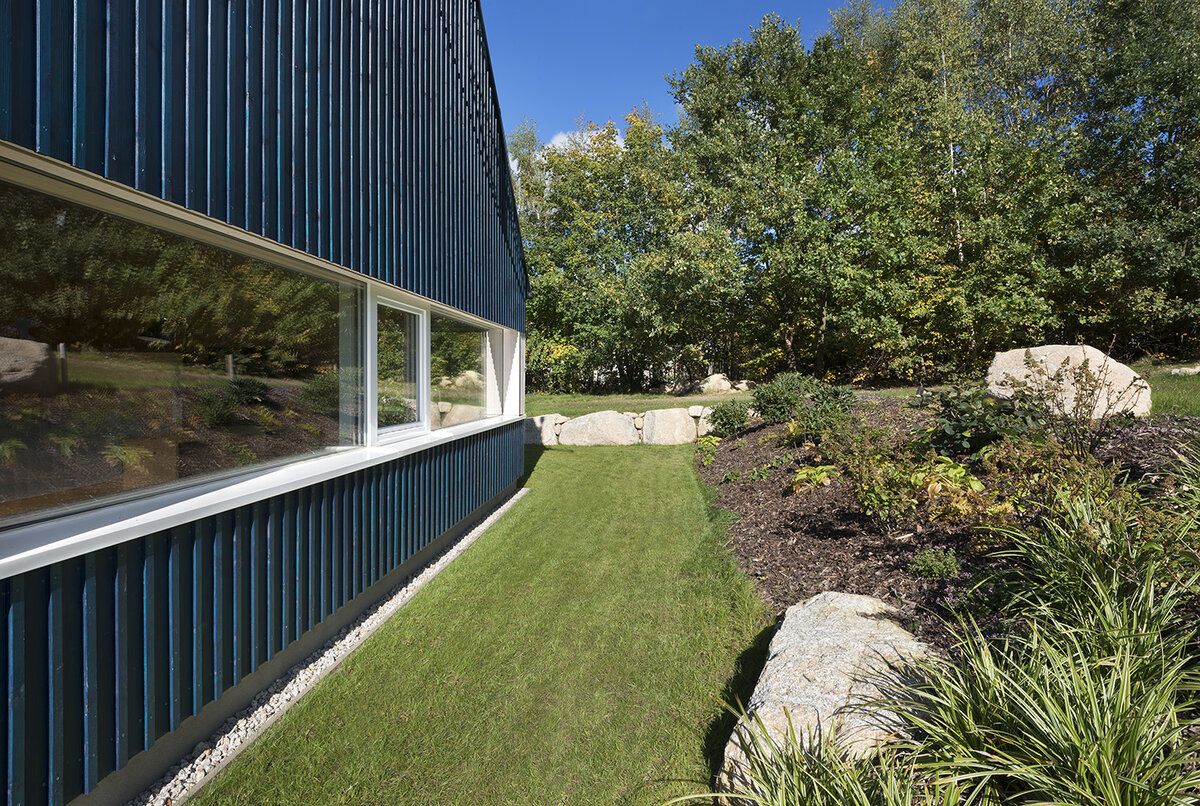 Na stavbu byly použity přírodní materiály typické pro tento kraj, jedná se o dřevo, kámen i sklo, které jej proslavilo po celém světě. Sokl domu je ze světlého pohledového betonu, fasáda pak z vertikálně kladeného prkenného obkladu v tmavě modré barvě. Konstrukce domu je realizovaná z masivních CLT panelů, které zůstaly v interiéru přiznané.