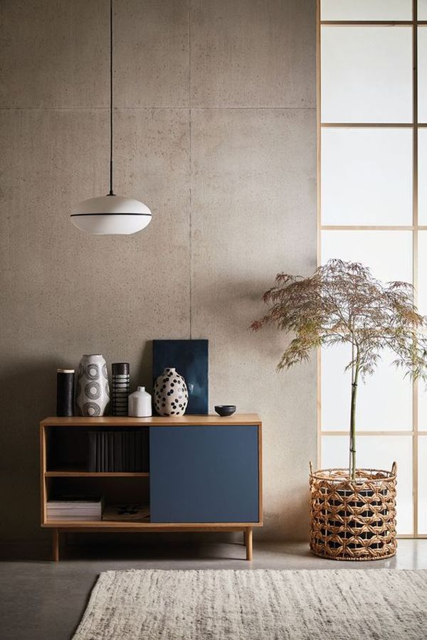 Kontrast je nezbytný pro vytvoření zajímavých interiérů, což je také případ stylu Japandi. Klíčovými barvami jsou béžová, světle šedá, růžová, bledě modrá a pastelově zelená. K tomu přidejte kontrastní antracitovou šedou, indigo a černou.