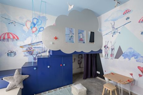 Jedná se o návrh interiéru a realizaci dětského pokoje s možností přidání postele pro případného sourozence. Využita byla autorská malovaná tapeta se slepou mapou světa a částmi s tabulovou úpravou pro kresbu. Je zde loftová postel s originálním krytím a úložným prostorem. Pokoj je navržený jako rostoucí, počítá s další etapou růstů dítěte a možností umístění další postele. Je zde ponecháno místo nejen na plnohodnotnou postel, ale i pracovní místo, pro které je připravena elektroinstalace.
