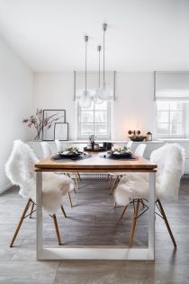 Dům byl postaven v 70. letech. Cílem rekonstrukce domu byla změna dispozic a vytvoření nových obytných místností z půdního neobývaného prostoru. Nábytek do obývacího pokoje si majitelka zvolila z exotického palisandrového dřeva, které má červeno-hnědou barvu. Dubový jídelní stůl pomyslně odděluje obývací část a kuchyň. V celém patře je jednotná vinylová podlaha, stěny jsou vymalované bílou barvou v kombinaci s betonovou stěrkou. Výborně jsou sladěné i detaily včetně vypínačů a dveří v antracitové barvě. Dominantou tohoto prostoru je bezpochyby krb včetně zajímavě řešeného úložného prostoru na dřevo. Krb slouží jako hlavní zdroj vytápění.