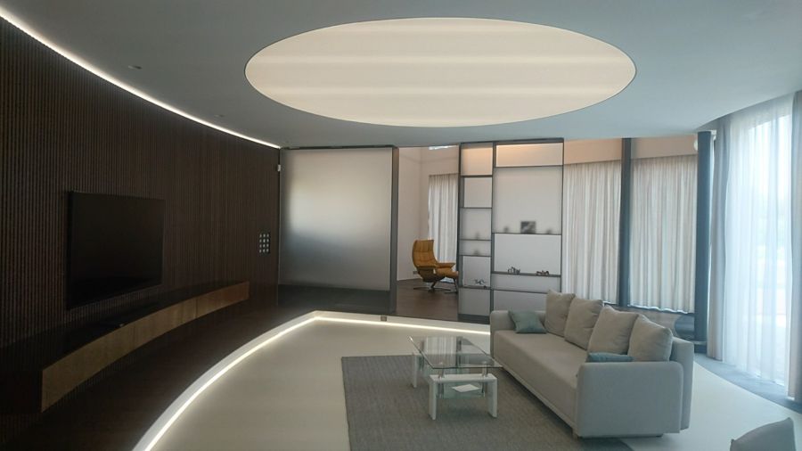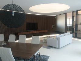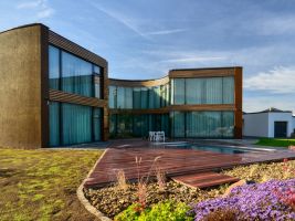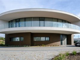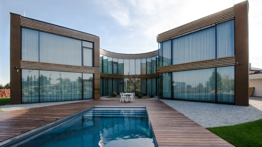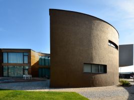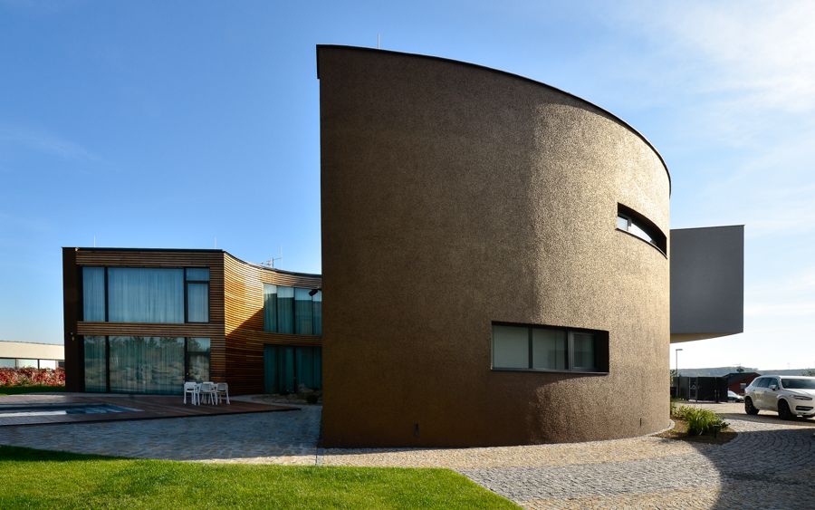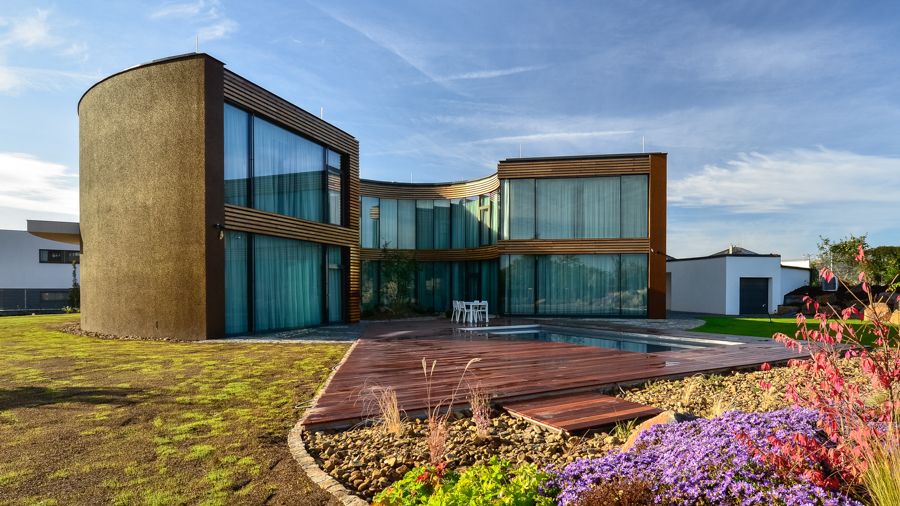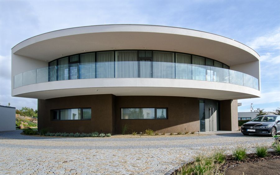 Vila v Moravanech u Brna upoutá pozornost svým netradičním kruhovým půdorysem. Cílem architektů z ateliéru DIMENSE bylo navrhnout pro soukromého investora reprezentativní sídlo s atypickými prvky. Výsledkem je honosná vila s oválnými tvary. Uvnitř půlkruhové slupky se skrývá atrium, které se otevírá do zahrady, a přitom chrání rodinné soukromí.