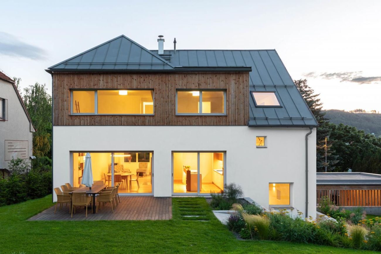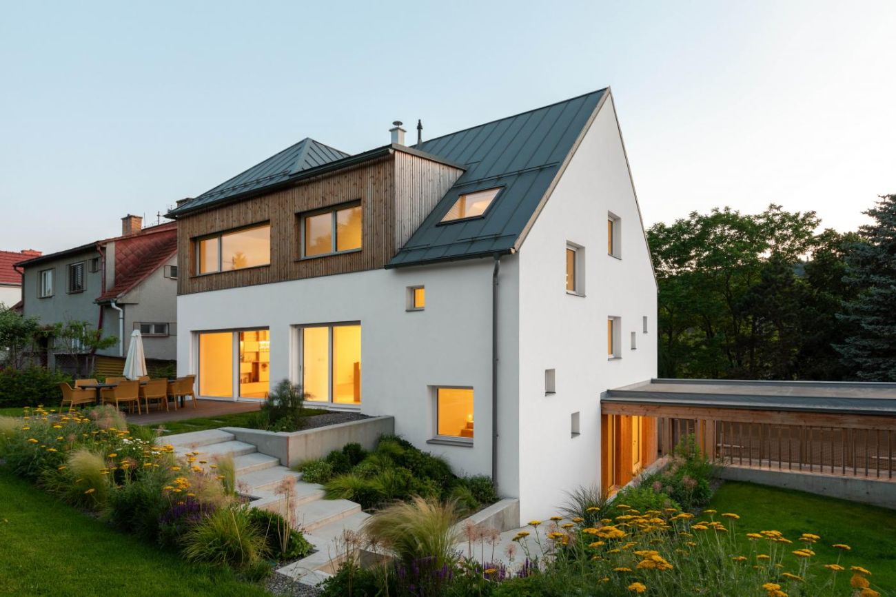 Starší rodinný dům z 50. let minulého století stojící v nedaleké obci Brna se díky zásahu architektů z ateliéru JVArchitekt proměnil v moderní objekt s nadčasovými prvky. Úkolem nebyla jen samotná rekonstrukce, ale i úprava svažité zahrady a její propojení s domem.