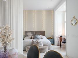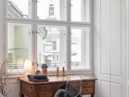 Při zařizování bytu se designérka nechala inspirovat samotnou historickou budovou. Objevují se zde mimo jiné prvky, kterými jsou zdobeny společné prostory domu, stejně tak i použité materiály.