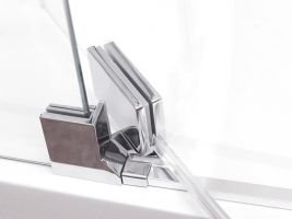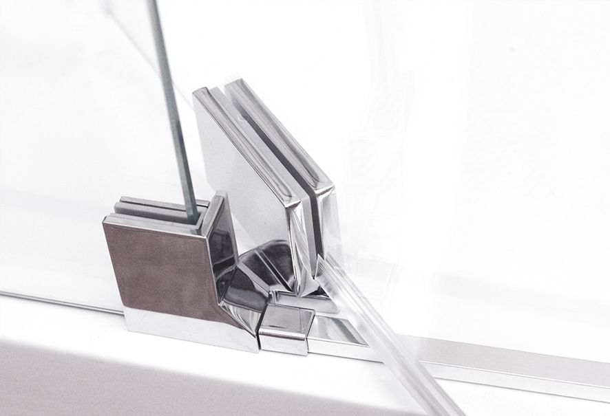 Pro výrobu dvířek do sprchových koutů se používá bezpečnostní sklo o tloušťce 6 mm s aplikovanou ochrannou vrstvou RothETC. Další výhodou tohoto elegantního provedení je nadčasové kování z kvalitní chromované oceli a minimalistická integrovaná vzpěra zajišťující perfektní stabilitu.