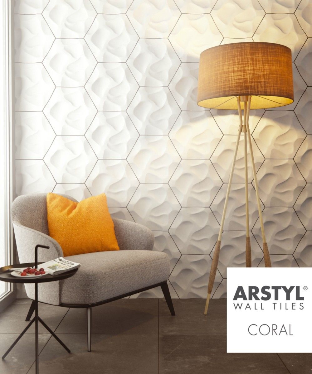 Kolekce Arstyl Wall tiles obsahuje 3 nové módní vzory: Wing, Coral a Ray. A novinkou řady Arstyl Wall panells jsou: Pure, Fun, Natural.
