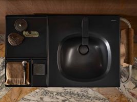 Umyvadla z kolekce Aurena disponují příjemně velkými plochami a praktickými integrovanými úložnými přihrádkami. Nabízejí výběr ze čtyř povrchových úprav – bílá, saténově matná bílá, černá a matná černá, které se hodí do různých stylů interiérů. Díky speciálnímu povrchu HygieneGlaze Plus jsou keramické části snadno čistitelné a hygienické, což ocení každý uživatel.