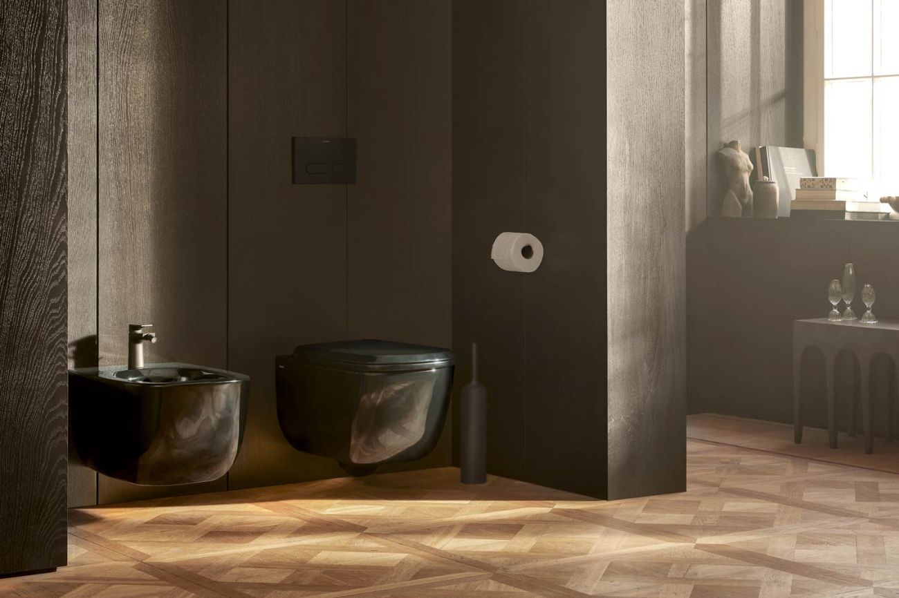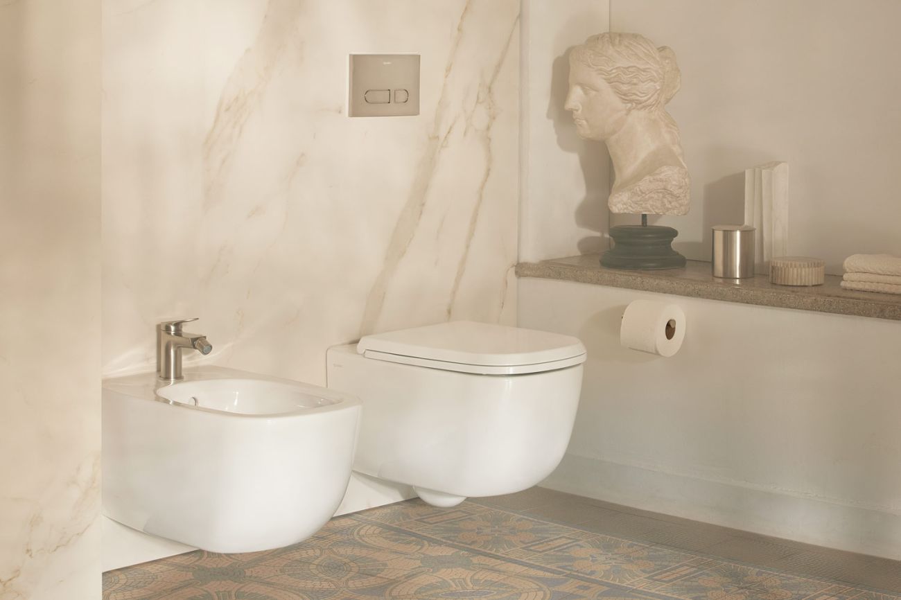 Toalety a bidety řady Aurena se nesou ve stejném designovém duchu. Závěsná WC jsou vybavena funkcemi HygieneFlush a Duravit Rimless, což zajišťuje vysoký hygienický standard. Povrch HygieneGlaze Plus dále zvyšuje hygienické vlastnosti keramiky, čímž série Aurena vychází vstříc i těm nejnáročnějším požadavkům na čistotu a estetiku.