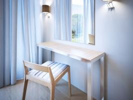 Ženy pak jistě ocení kosmetický koutek se zrcadle a malým stolkem.