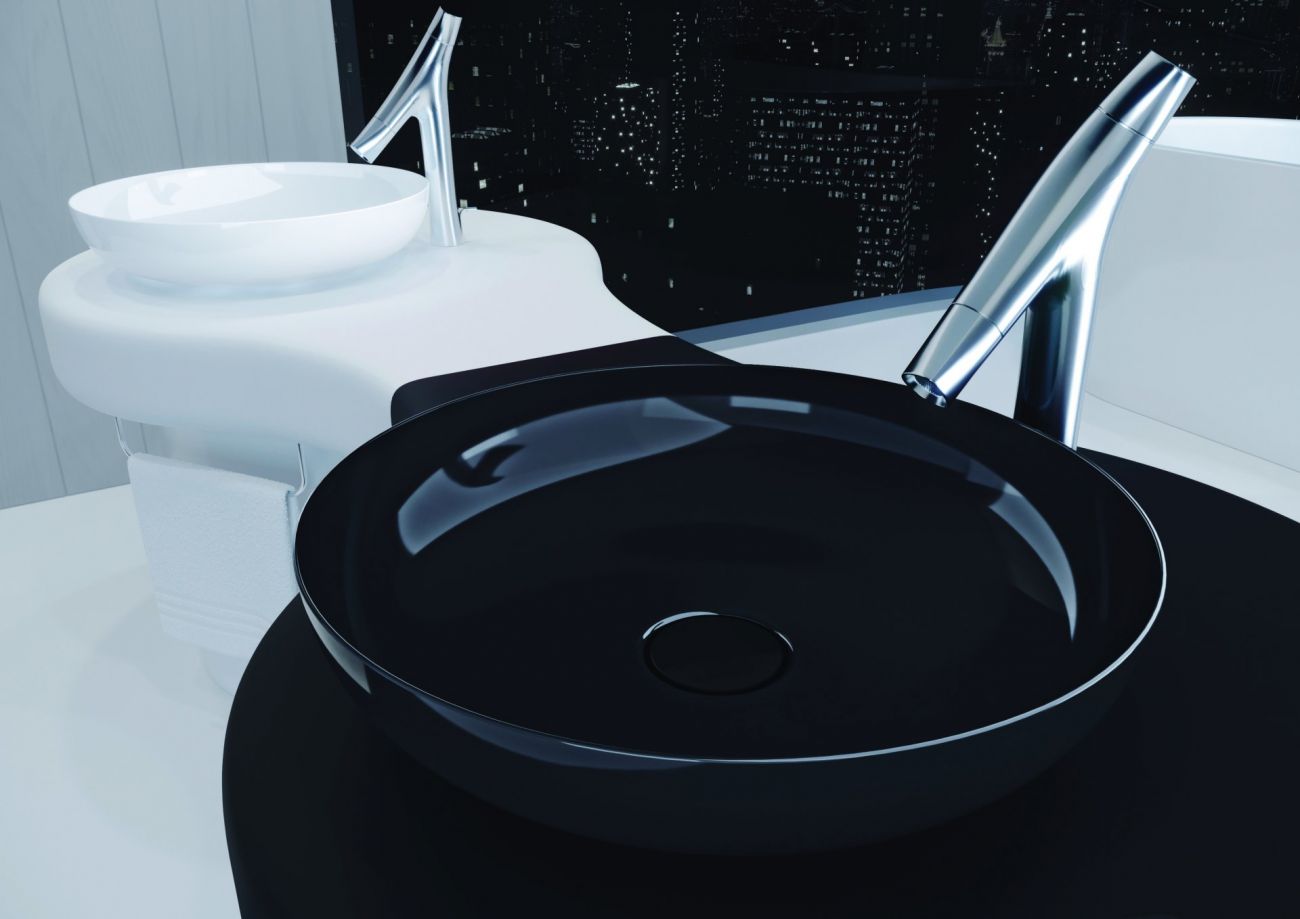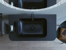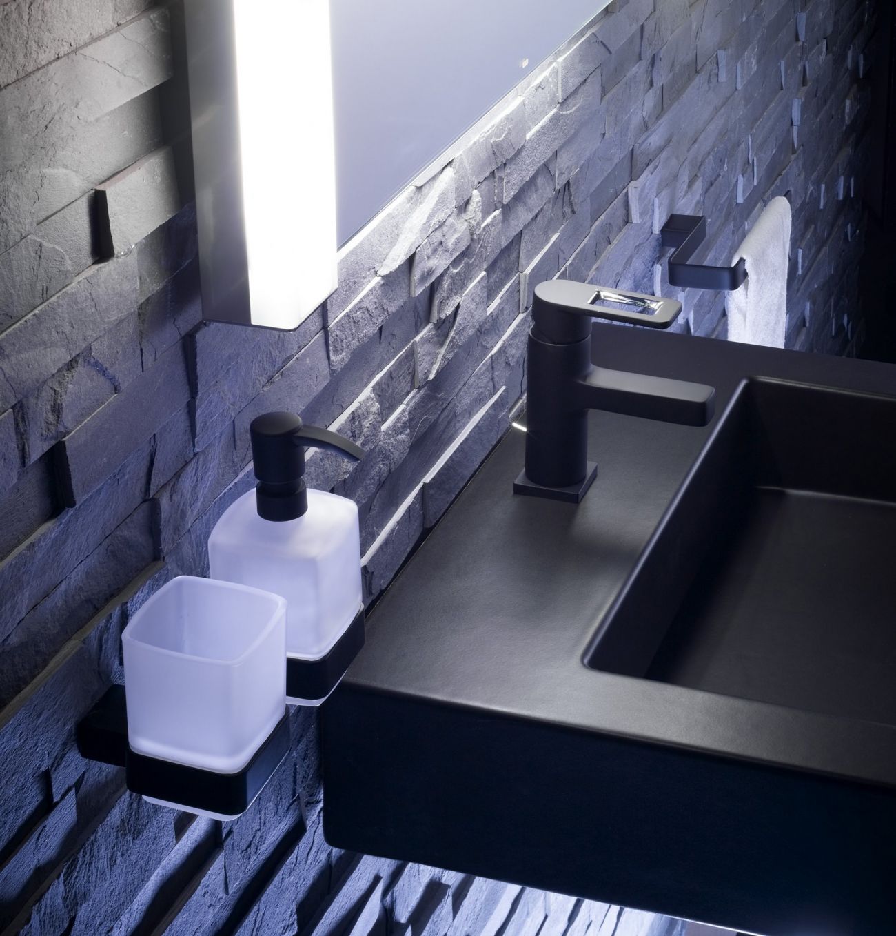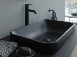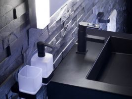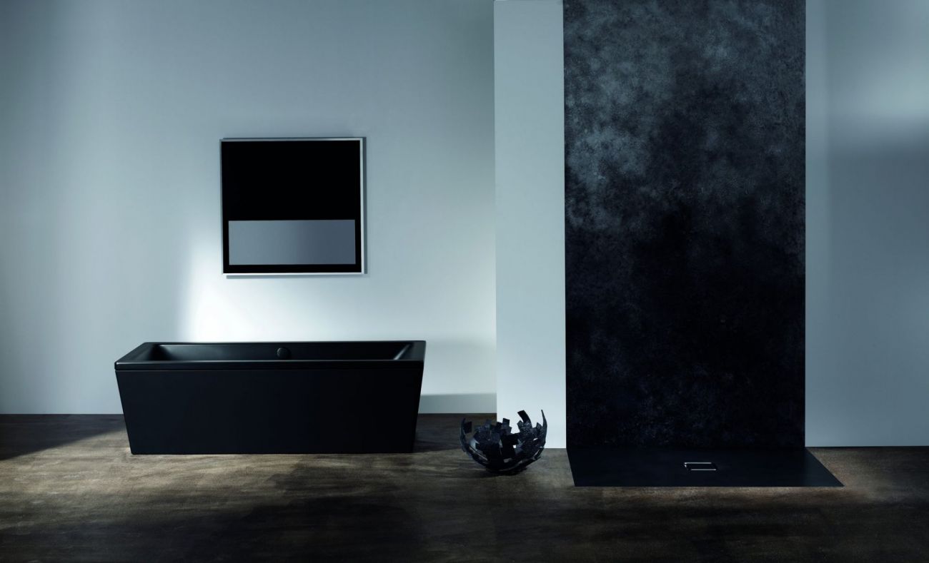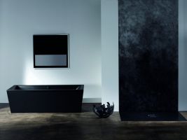 Černá barva působí podobně. Umí zvýraznit jiné barvy a vzory. Černá dokáže podtrhnout tlumené barvy, které by samy o sobě mohly působit fádně. Do koupelny pořídit kromě černého kusu nábytku také černou sanitární keramiku včetně van. Černou sanitární keramiku doplňte bílými prvky nebo naopak. Tato kombinace vzbudí dojem luxusu a elegance.