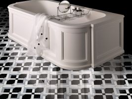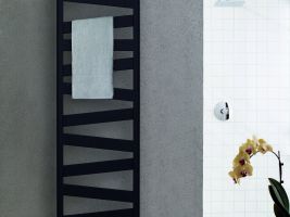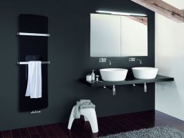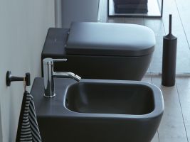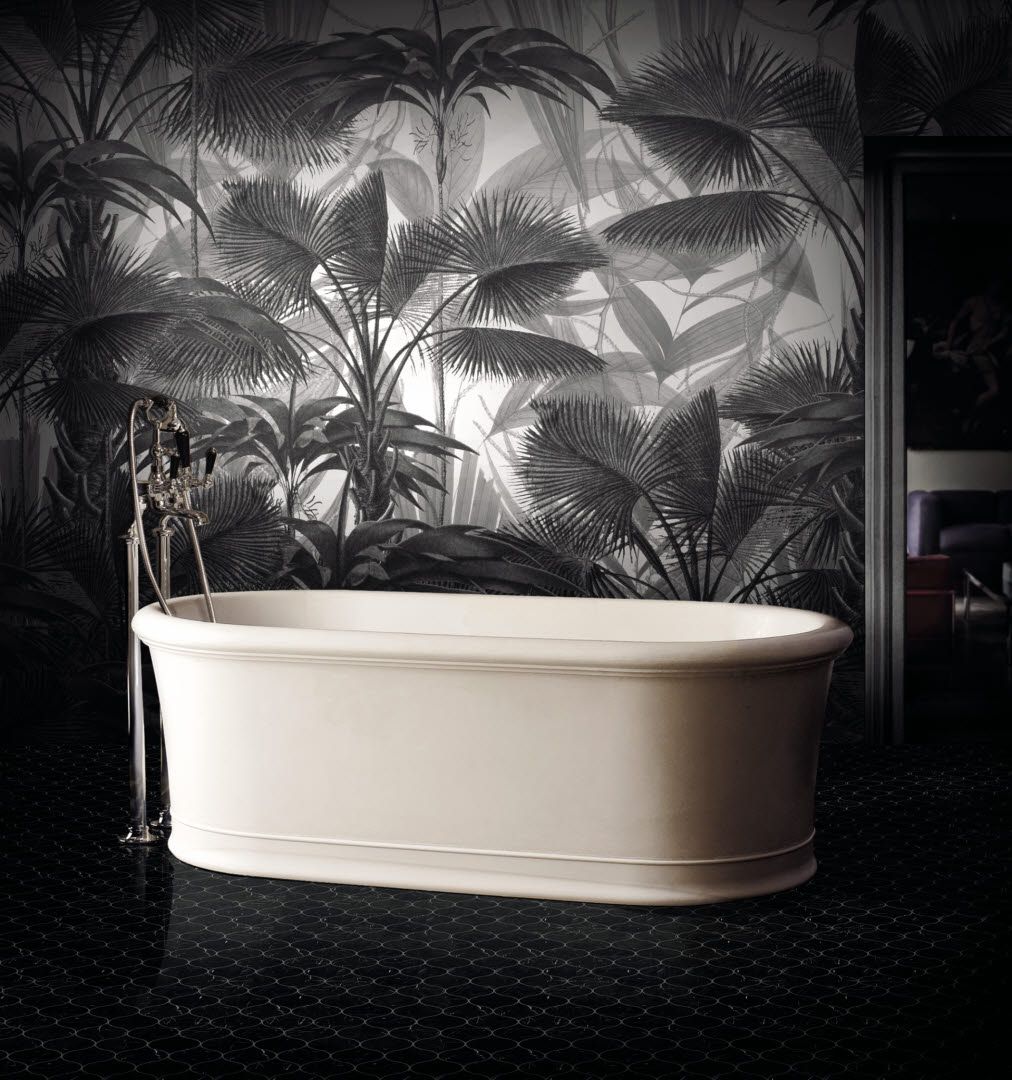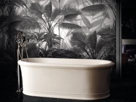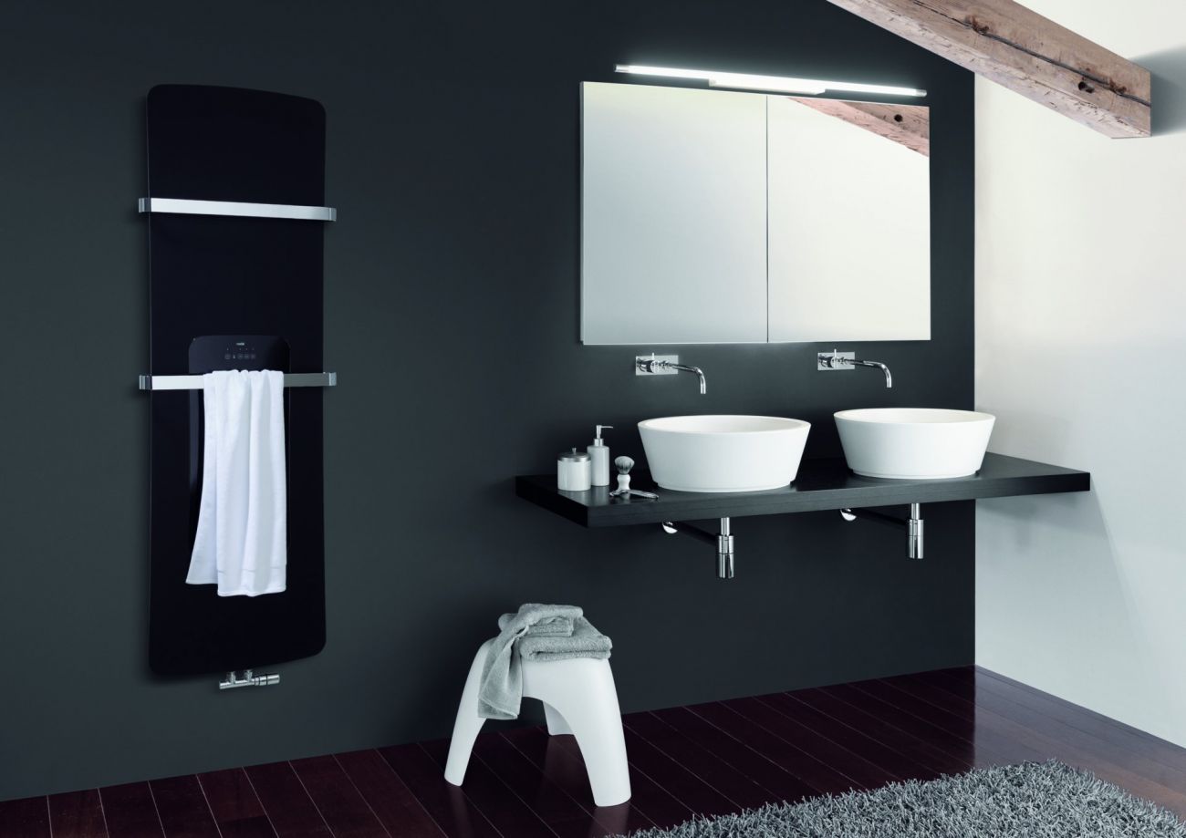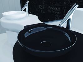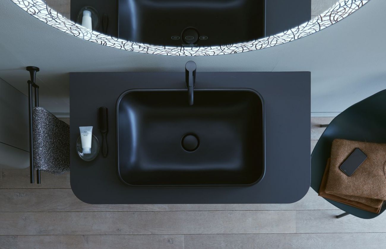 Černá barva působí podobně. Umí zvýraznit jiné barvy a vzory. Černá dokáže podtrhnout tlumené barvy, které by samy o sobě mohly působit fádně. Do koupelny pořídit kromě černého kusu nábytku také černou sanitární keramiku včetně van. Černou sanitární keramiku doplňte bílými prvky nebo naopak. Tato kombinace vzbudí dojem luxusu a elegance.