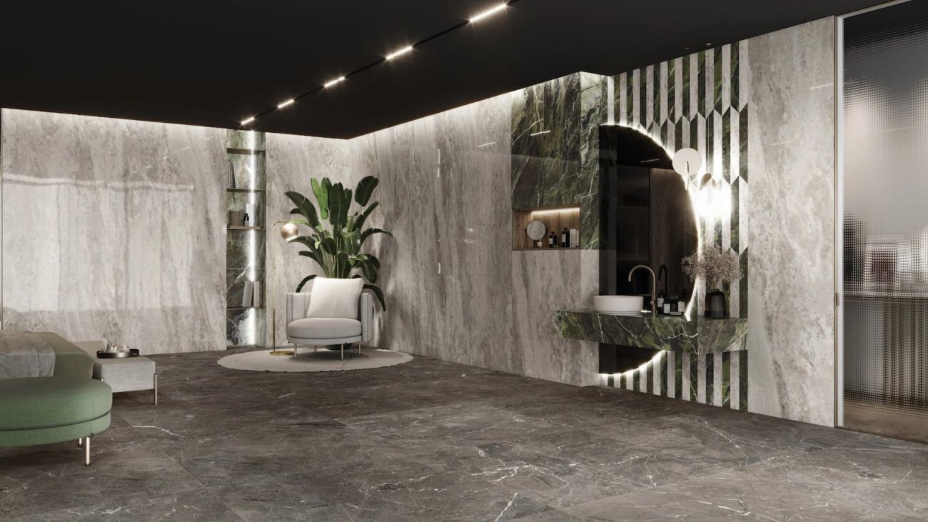 Například kolekce Heritage Luxe od italského výrobce Florim4Architects se inspirovala ušlechtilými mramory. Tuto dlažbu nabízí společnost ProCeram. Žilkovaná kresba obkladů odpovídá dekorativním potřebám moderní doby. Série nabízí celkem šest odstínů inspirované klasickou krásou mramoru. Grafické detaily lépe vyniknou na velkých plochách, proto se hodí spíše pro otevřené prostory, kde vytvoří doslova umělecké dílo.Tyto obklady lze využít v koupelnách, obývacích pokojích či reprezentativních prostorech.