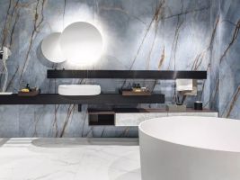 Luxusní mramorové koupelny jsou tak přitažlivým místem s výjimečnou atmosférou, které příznivě působí na lidský organismus. Navíc tento vzor se používá už tisíce let a stále nevyšel z módy. Pokud toužíte po něčem opravdu jedinečném a nadčasovém, díky digitální technologii můžete zvolit takový design kamene, který byl v přírodě už téměř vytěžen. Například série Les Bijoux de Rex je doslova nadstavbou mramoru. Výrazná kresba je krásně vybarvena, předlohou těmto dlaždicím byly méně známé mramory a žuly, a proto je tato série naprosto výjimečná.