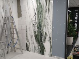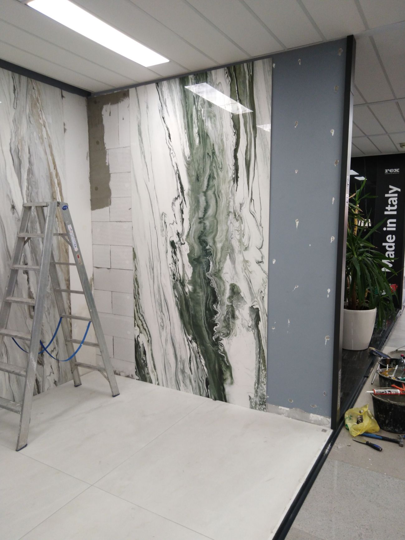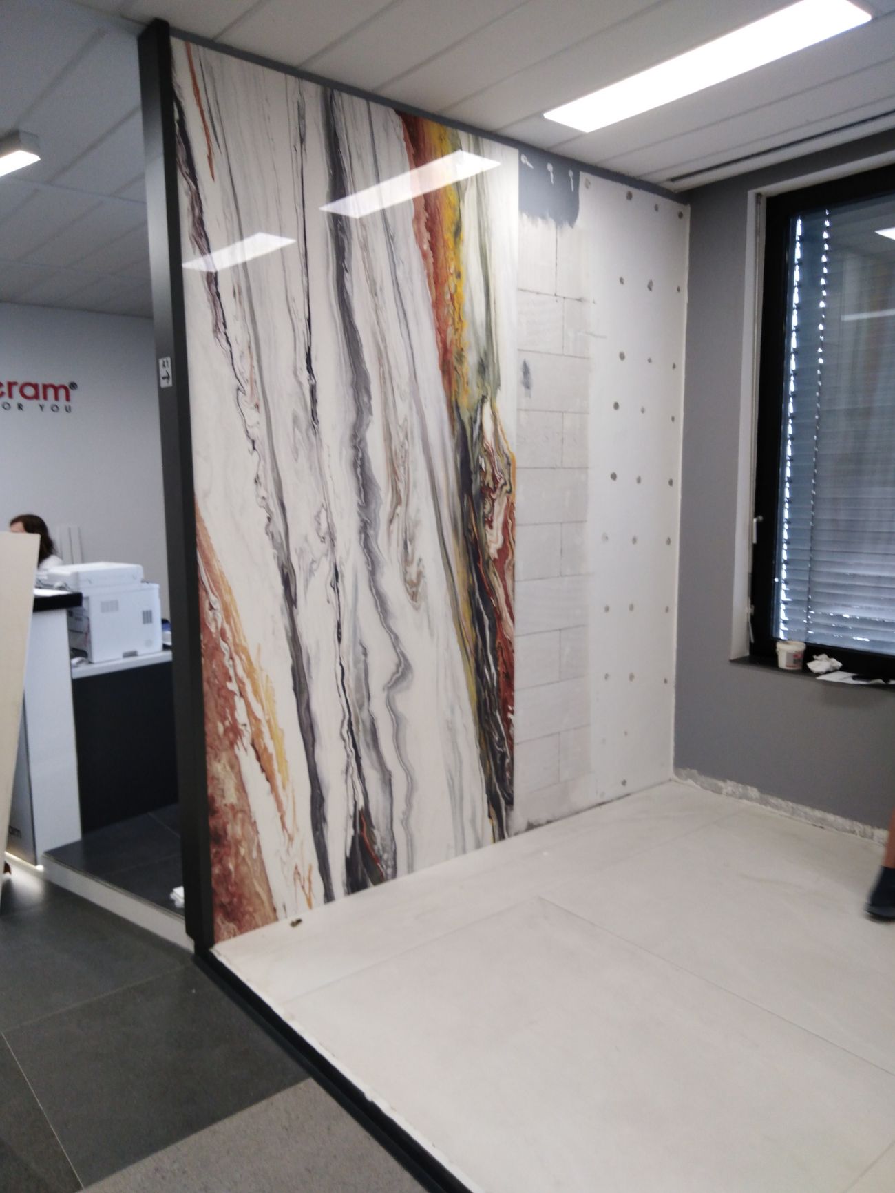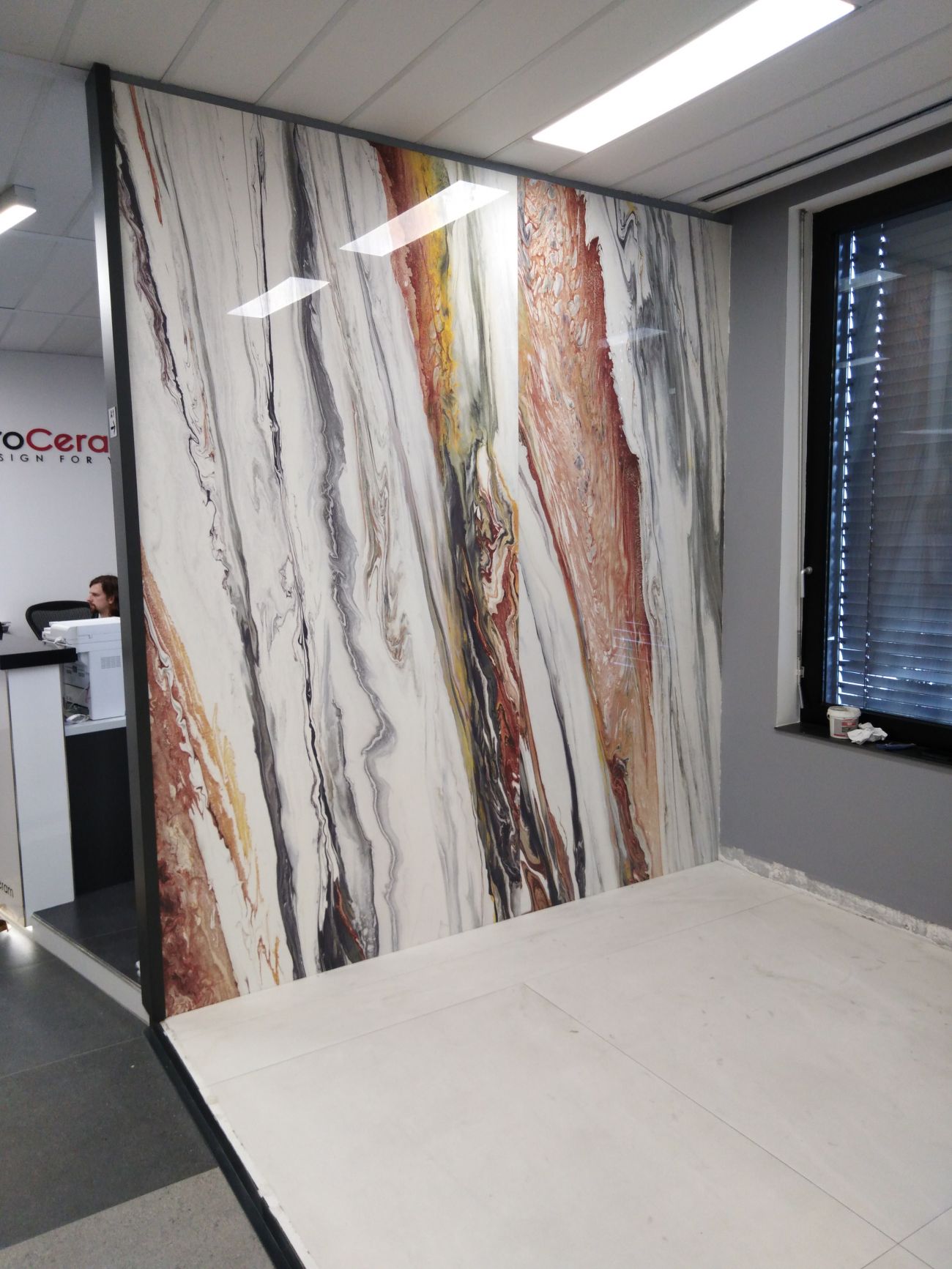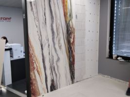 Krása Liquid Cosmo spočívá především v jejím detailu. Nová série je již vyvzorována v showroomech společnosti ProCeram, konkrétně v pražském New Living Center a v showroomu v Plzni. Níže se na vzorek můžete podívat ve fotogalerii z umisťování obkladů do showroomů.