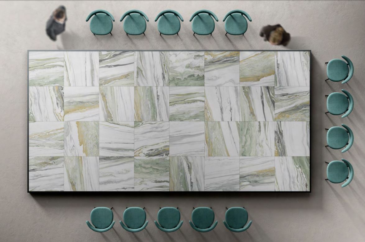 Italský výrobce Iris Ceramica přišel s novinkou Liquid Cosmo. Nová série, která byla představena na italské výstavě Cersaie 2018, je zhotovena ve třech barevných provedeních Liquid Green, Liquid Grey a Liquid Purple. Rozměry má 150x300 centimetrů s možností dalších podformátů. Svým designem připomíná stékající barvu.