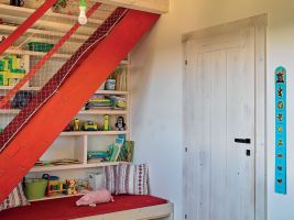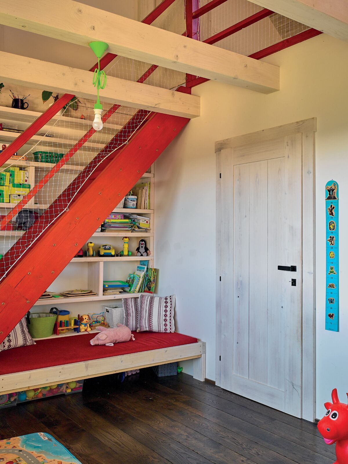 Použití sádrovláknitých desek Rigidur v rodinném domě v Haraticích působí v tomto případě jen jako doplněk dřeva v rozličných podobách. Přesto je zřejmé, že celý dům v Haraticích je jednotou dřeva a suché výstavby.