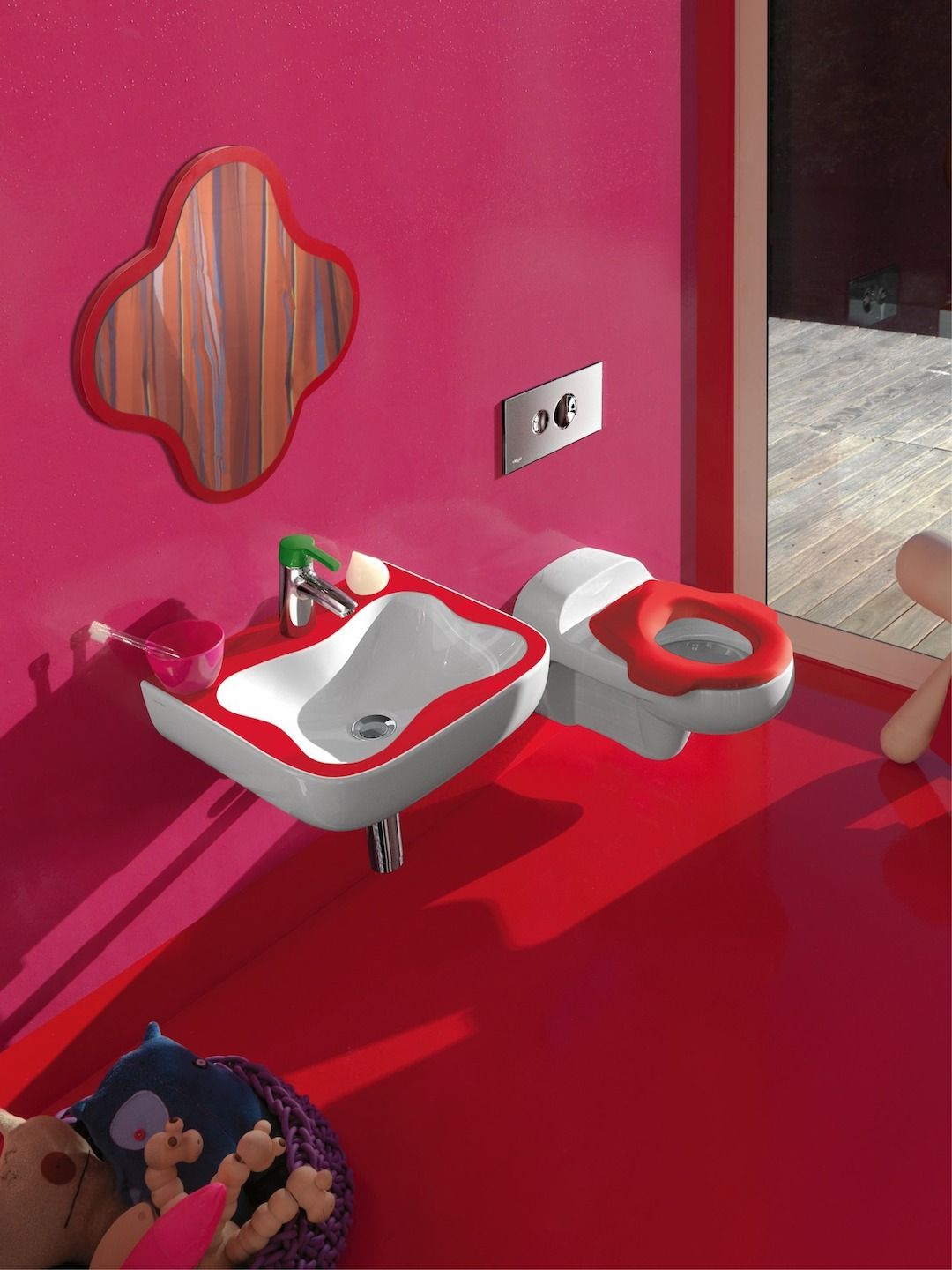 Hlavním motivem řady Florakids je umyvadlo ve tvaru velkého květu v bílém, červeném nebo zeleném provedení. V prostředí školky lze umístit několik umyvadel vedle sebe, a vytvořit tak dostatečně velké odkládací prostory. Umyvadla lze doplnit o keramické poličky ve tvaru mraků odpovídající barvy. Zrcadla se nabízejí v červeném provedení s květinovým vzorem, nebo v zeleném ve vzoru housenky. Jednotlivé komponenty zrcadel na sebe mohou navazovat.