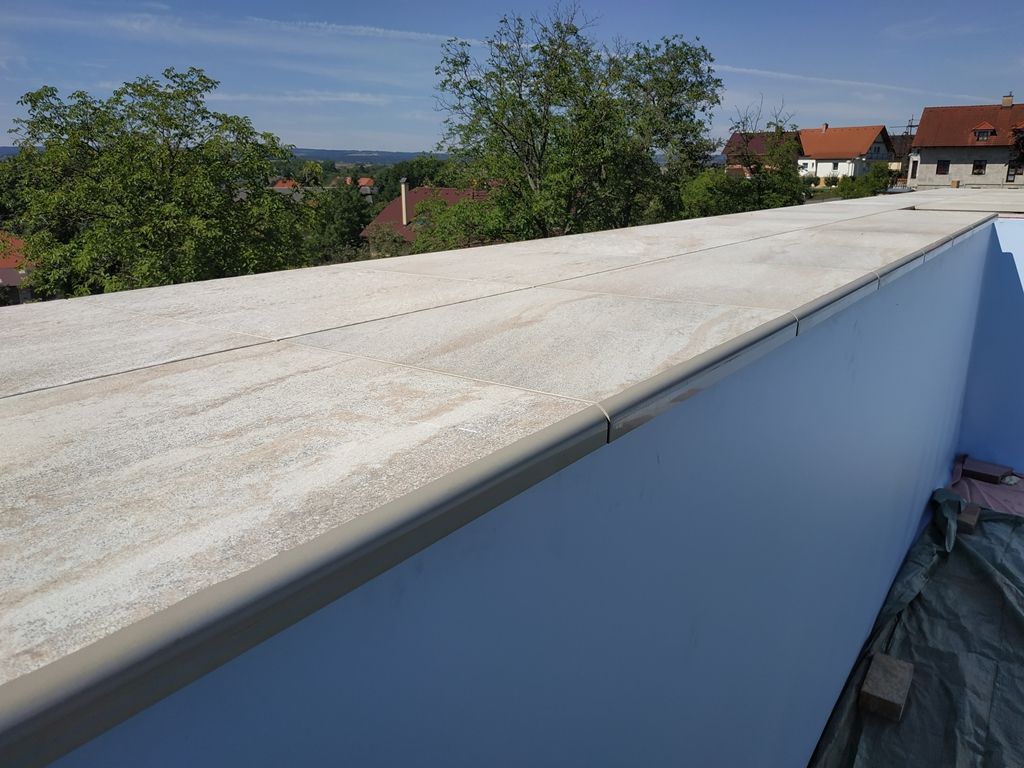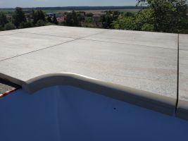 Zajímavostí tohoto projektu je použití dvou typů hran, které byly vyrobeny ve výrobním závodě TechnoArt. Jako bazénová tvarovka, zde byla použita hrana T4/A2/B35, tato hrana byla zvolena s ohledem na bezpečný vstup do bazénu. Jako lem terasy byla naopak zvolena rovná hrana K1, která navozuje dojem, že jsou na terase položeny 5 cm silné kamenné desky.