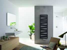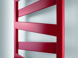 Radiátor Zehnder Kazeane má diagonálně uspořádané ploché trubky, které jsou inspirovány víceúrovňovými architektonickými díly. Šikmé žebrování je provedeno střídavě z obou stran radiátoru. Praktickou výhodou tohoto uspořádání je více prostoru pro ručníky pro každého člena rodiny. Nový typ radiátoru je k dispozici v 50 barevných odstínech, a to ve variantě pro teplovodní nebo kombinované vytápění.
