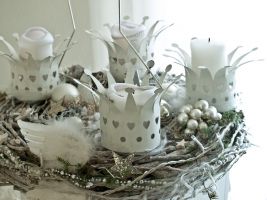 V roce 2018 můžete vsadit na zářivě bílou barvu s porcelánovým leskem nebo s perletí. Neuděláte ani chybu, pokud zvolíte věnce v bílé barvě se stříbrným dekorem, ledové krystalky a umělý sníh. Bílou barvu můžete kombinovat s jemnými odstíny růžové, mátové nebo pistáciové.