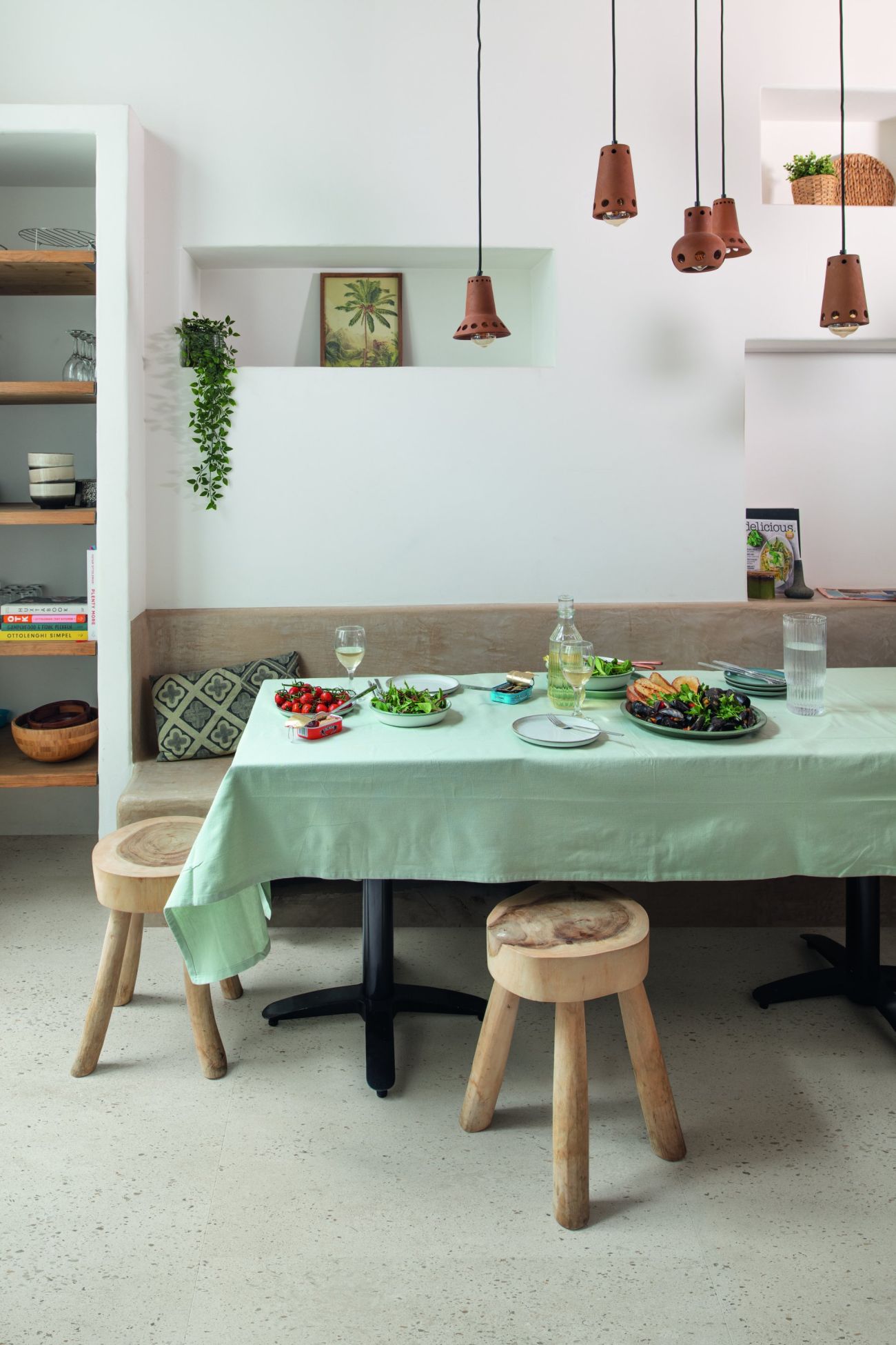 Moře je nekonečným zdrojem inspirace, jak do svého domova vnést ten nádherný prázdninový pocit. Pro začátek je tu kaleidoskopický výběr barevných odstínů, který vám umožní vytvořit spoustu efektů s velmi malým úsilím. Můžete například zvolit klasický námořnický styl pobřeží Severního moře nebo azurově modré odstíny pro atmosféru Egejských ostrovů. Kombinací těchto barev s bílou okamžitě dodáte interiéru spoustu světla a prostoru. Tento efekt můžete ještě více umocnit použitím přírodních materiálů, jako je proutí, juta a len. Můžete si také pohrát s jemnými detaily, jako je květináč s dunovou trávou nebo mušlemi nasbíranými jako suvenýry z cest, které můžete zakomponovat do svého interiéru. Chcete kompletní prázdninovou proměnu? Pak je volba správné podlahy výchozím bodem. V nové kolekci Illume od společnosti Quick-Step najdete betonovou podlahu v odstínu ústřice, kterou můžete instalovat po celém domě. Kromě decentního designu mušlí a kamenů má tato podlaha také všechny výhody Vinyl Flex, kategorie měkkých a flexibilních vinylových podlah Quick-Step. Dokonce nepotřebujete žádné profily, takže s touto podlahou můžete pokrýt velké vzdálenosti. Díky patentovanému systému Uniclic se můžete rozhodnout, jak chcete podlahu instalovat. A dobrou zprávou je, že se při tom nepráší a není potřeba žádná pila. Což znamená instalaci bez stresu a měkkou, teplou vinylovou podlahu během okamžiku.