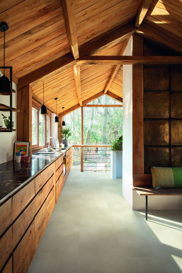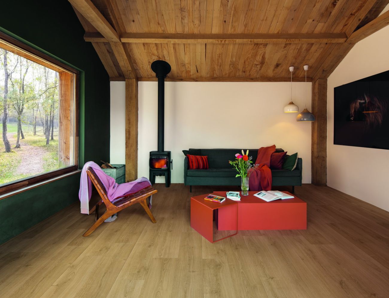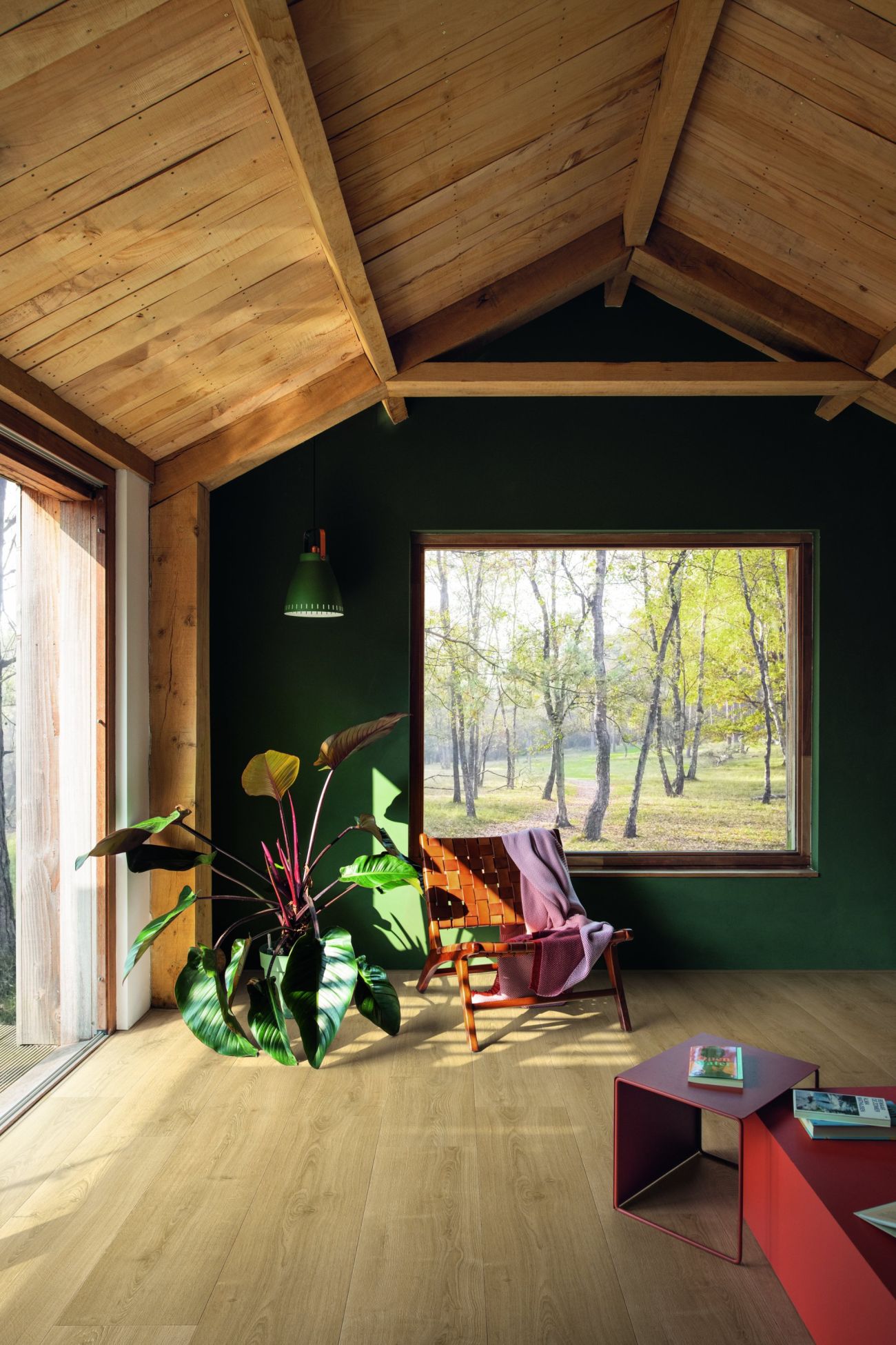 Srub na odlehlém jezeře v Kanadě nebo dům na stromě s výhledem na norské fjordy mohou být nekonečným zdrojem inspirace. Pokud se rozhodnete pro tento styl dovolené, je velká šance, že milujete všechny druhy zeleně. Volte především zemité odstíny a syté barvy od okrové po slunečnicově žlutou. Pokud jde o textury, můžete se inspirovat nejen lesy, ale také zvířaty žijícími ve volné přírodě. Použijte na dotek příjemné materiály, jako je vlna, peří a prachové peří, nebo nechte procházet interiérem sekvence a vzory z přírody jako stálé téma. A samozřejmě budete potřebovat příjemná kamna na dřevo a útulná křesla s hřejivými dekami a dekorativními polštáři. A v neposlední řadě je dřevo základním prvkem pro vytvoření atmosféry domu obklopeného přírodou. A to jak v nábytku, tak v obkladech stěn, ale samozřejmě také v podlaze. Ideální volbou je zde jedna z podlah Quick-Step Capture. Tato kolekce laminátových podlah vypadá jako pravé dřevo více než jakákoli jiná podlaha, a navíc se opravdu snadno udržuje. Nemusíte se tedy bát, že byste vešli dovnitř s botami od bláta z pořádné procházky v lese.