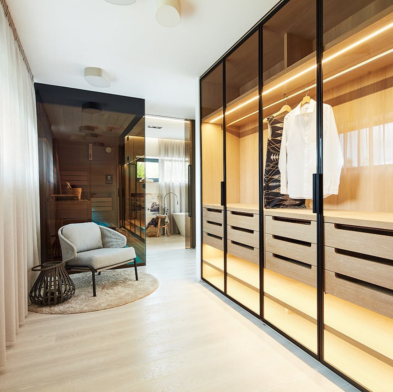 Interiér rodinného domku se nachází v rezidenční zástavbě jednotlivě stojících vil v pražských Průhonicích. Stylem se jedná o teplý minimalismus, který je plný detailů, které připomínají vášeň majitelů, a to je cestování.