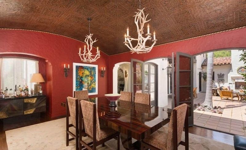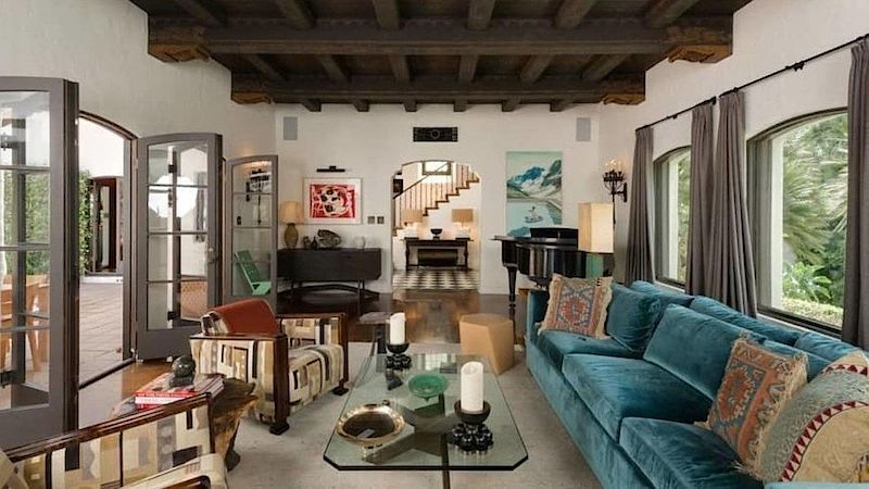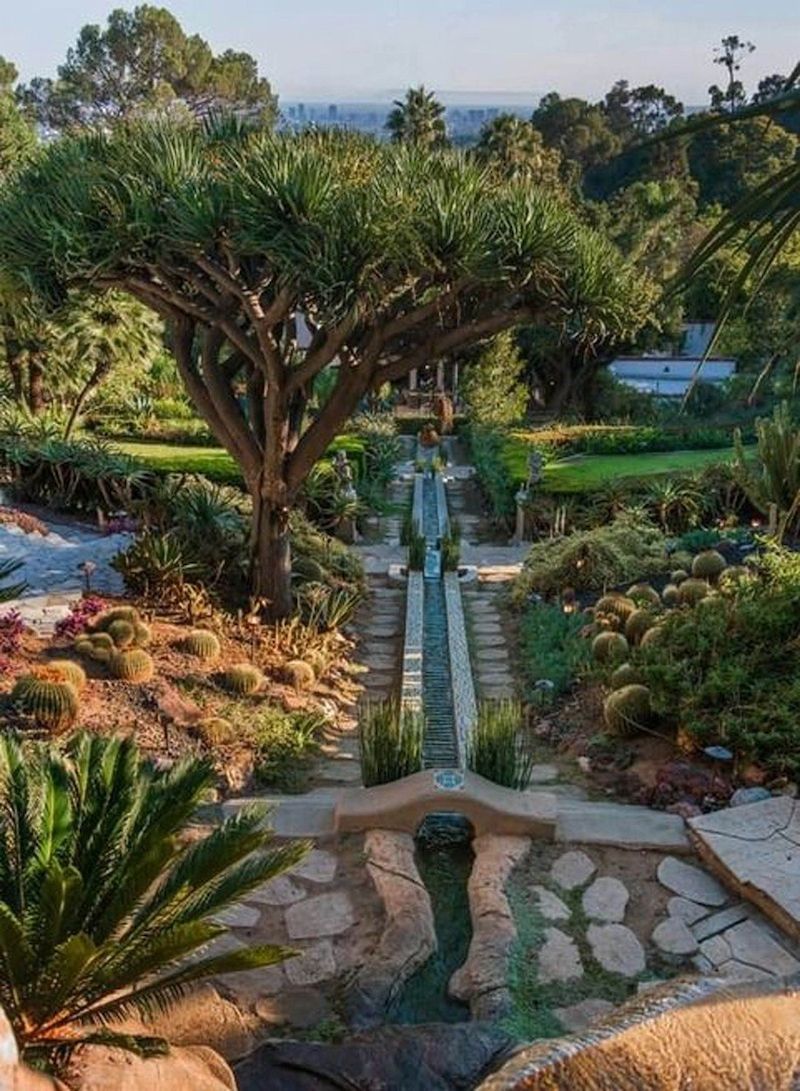 Zajímavý je v tomto případě také exteriér, kde kromě velkého posezení u venkovního krbu na nádvoří před domem se jeho obyvatelé mohou těšit například z bazénu. Jsou tu ale i další vodní prvky umístěné v zahradě o výměře 5868 čtverečních metrů. Ty v horkých dnech pomáhají s ochlazováním vzduchu. Je to vodní kaskáda, fontánka či jezírko s kapry koi.
