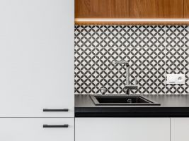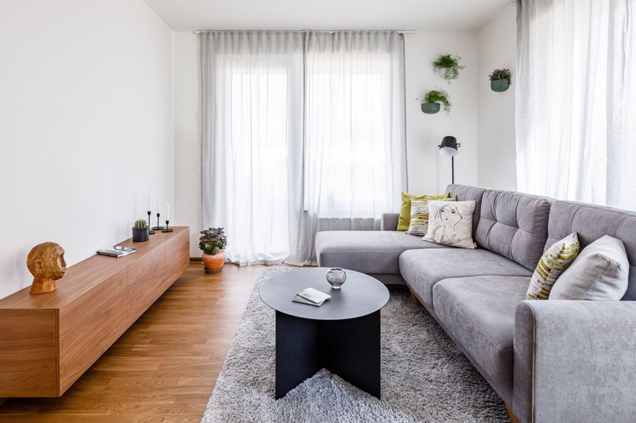 V novém vzorovém bytě kategorie 2+kk s předzahrádkou, situovaném v přízemí, o jehož návrh se postarala designérka YIT Stavo Lenka Hlaváčková Schubertová, se prolínají dvě základní barvy, bílá a přírodní hnědá. Přirozeně vypadající odstín dubu toffee se promítá na podlahových krytinách a na dekoru atypického nábytku. „Tyto základní barvy jsem při návrhu doplnila o jemné motivy šedé a béžové, které se objevují například na závěsech v ložnici a obýváku nebo na sedací soupravě a kobercích. Decentní odstín béžové se nachází také na obložení koupelny s vanou. Design jednotlivých místností tak na sebe příjemně navazuje. U každé z nich jsem pak použila další jedinečný výrazný motiv,“ vysvětluje designérka Lenka Hlaváčková Schubertová.