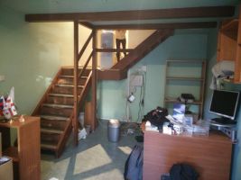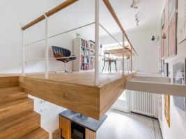 V polootevřeném patře lze najít odpočinkový prostor a ložnici s koupelnou.
