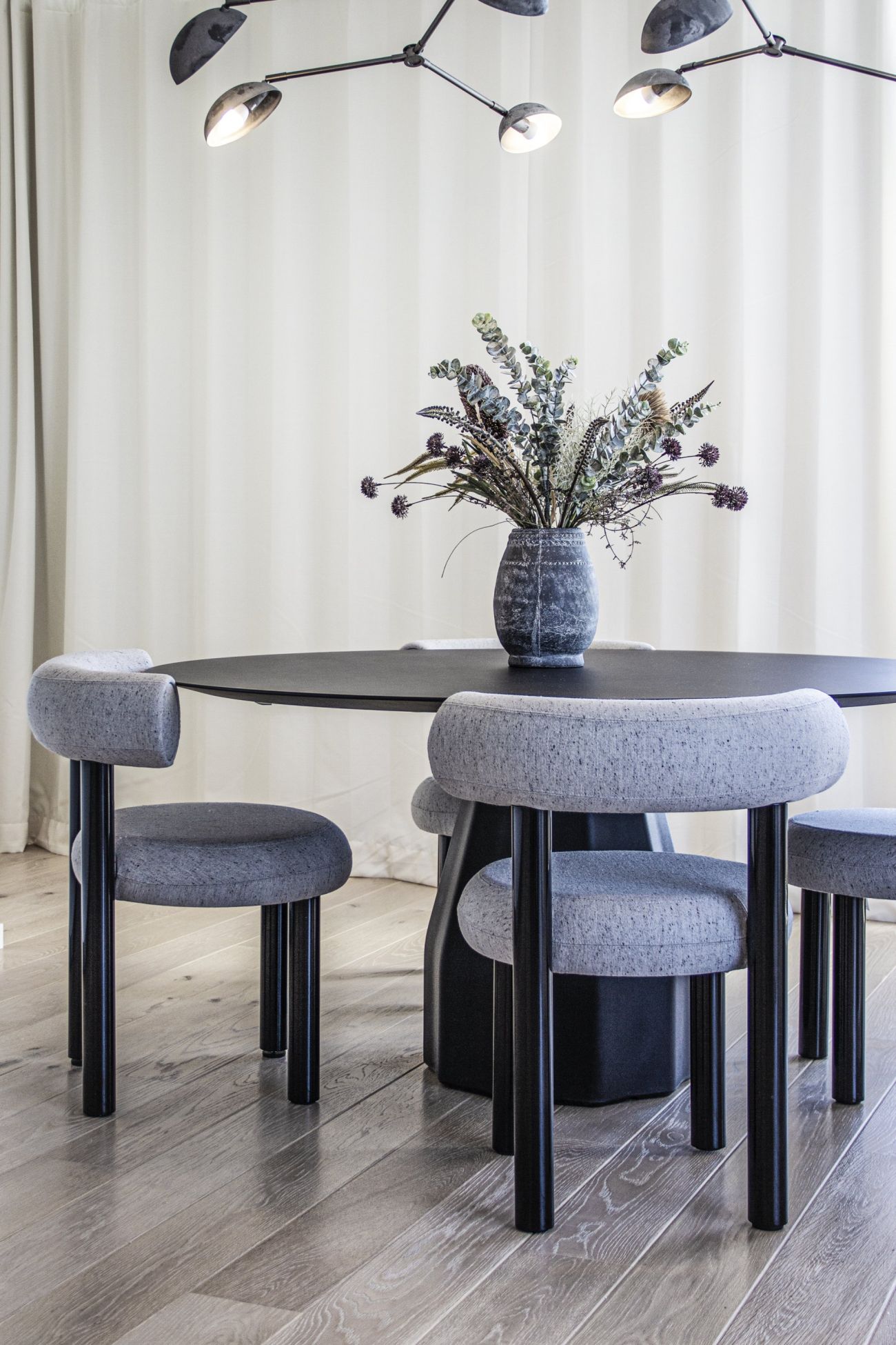 „Zatímco většina showflatu v Londýnských novostavbách nabízí zjevný luxus, často jim chybí osobitost. Ohledně projektu Long & Waterson nás oslovil klient se zadáním, nadesignovat 2 penthousy tak, aby z nich vyzařoval silný charakter a osobnost. Abychom zapůsobili na co nejširší cílovou kategorii, rozhodli jsme se každému z interiéru vtisknout velmi odlišný charakter. Konkrétně tento interiér je monochromatický a plný organických tvarů. Snažili jsme se vytvořit prostor s ojedinělým a výrazným charakterem, který na sebe nebude strhávat pozornost, ale spíše bude dotvářet příjemné pozadí pro ikonické výhledy z bytu,“ říká architektka Dagmar Zvoníčková.