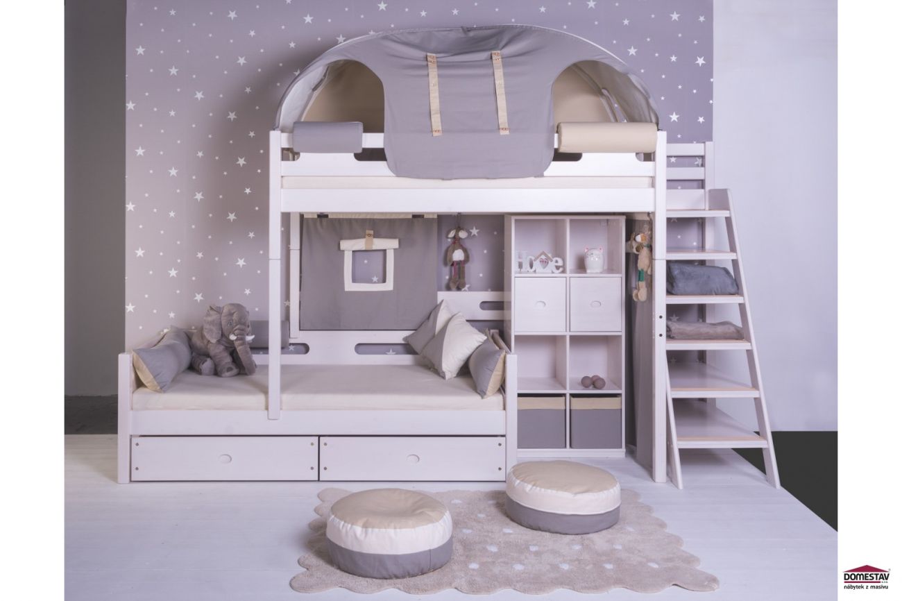Podobný účel splní i textilní domeček na palandu například ten od Domestavu slouží i jako zábrana.