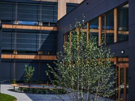 Budova reaguje i na dlouhodobé sucho a přívalové srážky, a to díky zeleným střechám a dalšímu velkému množství zelených ploch včetně fasád pokrytých popínavou zelení.