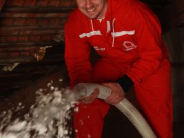 Jedná se o speciální protipožární izolaci, která odolává teplotě 2.000°C. Samotné práce na zateplení jsou rychlé a vysoce účinné. Stačí mít jen na půdě malý otvor, často jen 40x60 cm pro instalování hadice, kterou jde následně materiál do dutiny.