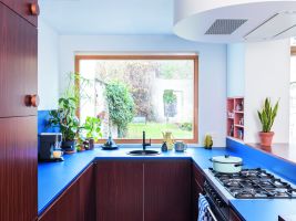 - Nejnovějším trendem v interiérovém designu je modrá barva v kombinaci se dřevem