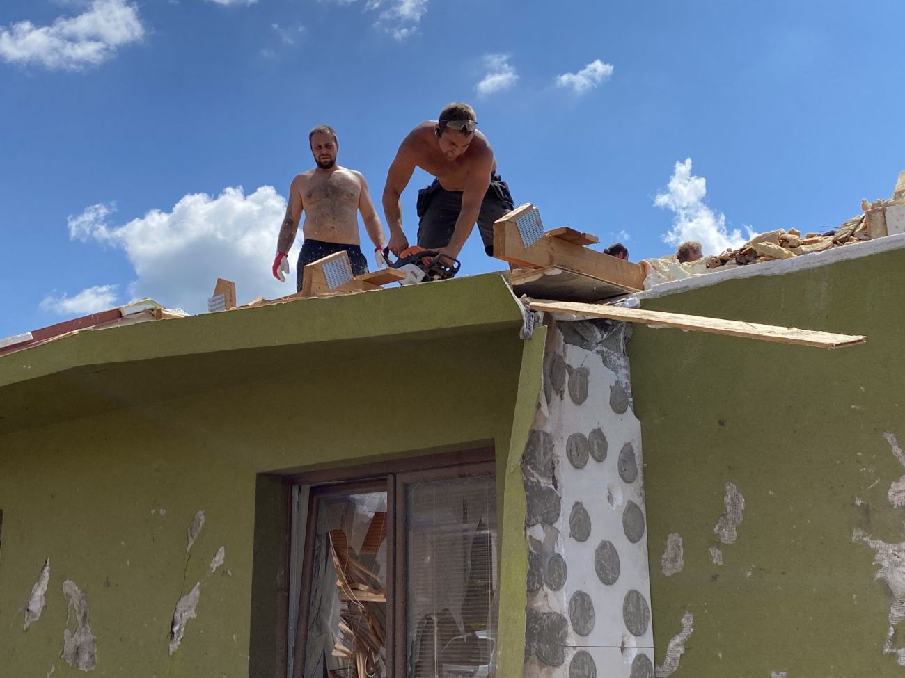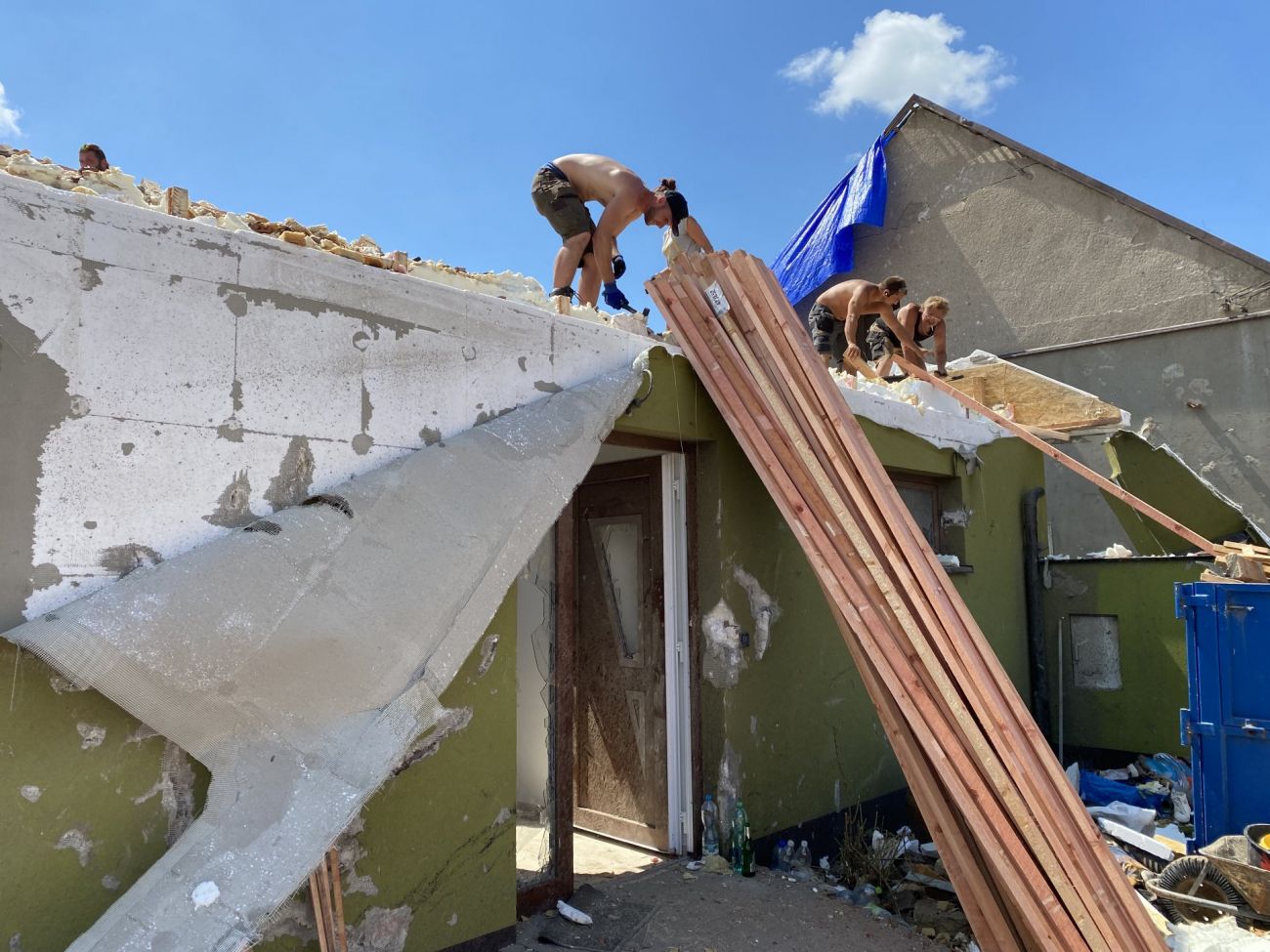 „Čtvrteční zpráva o ničivém tornádu zasháhla asi každého z nás. Proto když mě hned v pátek oslovil dlouholetý kamarád a střechař Daniel Klinka, zda nepojedeme pomoci do postižených oblastí, neváhal jsem ani vteřinu. Do hodiny jsme sehnali tým 9 dobrovolníků a s dodávkou plnou nářadí vyrazili na místo,“ říká Lukáš Trunec za tým TV Bydlení a TV Architect.
