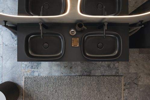 Součástí série je také samostatné zrcadlo, které napodobuje obrys kulatých misek. Jeho organickou formu podtrhuje celoobvodové LED osvětlení, které se zapíná a vypíná pomocí senzoru na spodní hraně zrcadla.