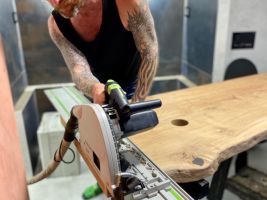 „Deska je ošetřena polyuretan-akryl lakem. Je velmi odolný jak proti poškrábání, tak proti vodě, což je oproti olejům, které jsou moderní a hodně používané lepší. Lak s vysokou odolností se totiž hodí více pro tak těžkou zátěž,“ vysvětluje Robert Gross.