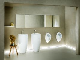 • Solitérní prvky, jako jsou volně stojící umyvadla nebo vany, fungují jako dominanty prostoru
