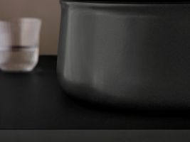 Konkrétně umyvadla jsou navržena ve tvaru japonských čajových mís, na dně mírně baňatá se zužujícím se okrajem. Tato neobvyklá umyvadla na desku perfektně ladí s minimalistickým nábytkem.