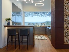 Prosklené plochy dosahují výšky až 5,5 metrů, přičemž okna s trojitým zasklením se vzhledem k rozměrům, ale i povětrnostním podmínkám musela speciálně konstrukčně navrhovat.