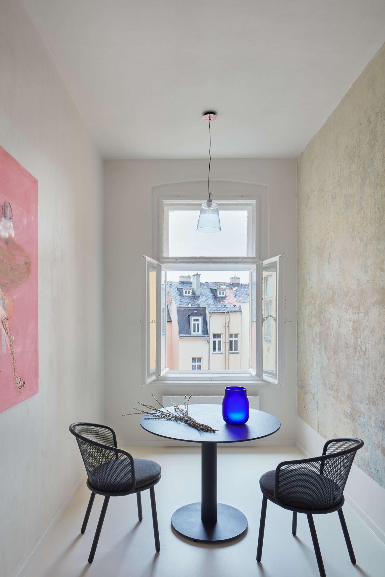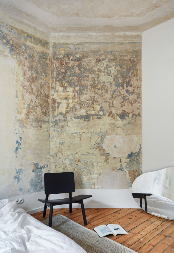 V průběhu prací se v bytě podařilo odkrýt hned několik původních výmaleb, které se autorky za pochodu rozhodly zakomponovat do interiérového designu. „Obdobnou pestrost růžových, modrých a hnědých omítek jsme doposud v žádné naší realizaci nenašly. Vše jsme vyvážily množstvím bílé, která zdůraznila význam stěn a jejich velkorysost.“ Tento motiv se stal linkou, která prostupuje celým interiérem. Odkrytí vytváří dolsova obrazy v každé z místností.