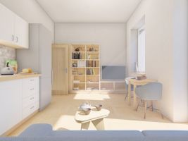 Rekonstrukce domu začne od ledna 2022 a končit by měla za rok, v lednu 2023. Prodej bytů byl už ale odstartován. Byty nabídnou dispozice od 26m2 do 56m2, 1kk až 2kk. V ceně bytu je zařízení koupelen a WC, podlahové krytiny, každý z bytů má svůj vlastní balkón. Je zde možnost za příplatek využít i kóje k bytům a parkovací místo.