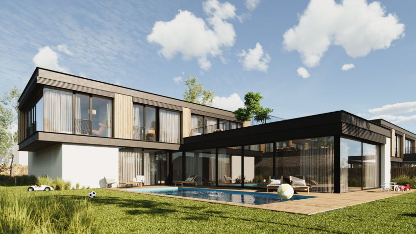Čtyři domy, které teprve vyrůstají, budou dokončené ještě letos na jaře. Na rozdíl od první etapy jsou tyto domy navrženy v architektonicky odlišném konceptu. Lišit se budou především tvarem střechy, která bude tentokrát rovná. Exkluzivní vily o dispozicích 6+kk a 7+kk budou mít prostorný obývací pokoj s jídelnou a s kuchyní, pracovnou a pokoj pro hosty s koupelnou. V prvním patře pak tři ložnice se třemi koupelnami. Samozřejmostí je spíž, prádelna, šatna, sklad, technická místnost, slunná střešní terasa a garáž pro dva vozy. „Dva z domů mají díky své poloze ještě podzemní podlaží, ve kterém je možné vybudovat wellness a relaxační zónu, nebo jednu bytovou jednotku. To se může hodit pro vícegenerační rodinu, pokud by majitelé potřebovali vytvořit samostatné bydlení s vlastním vstupem pro prarodiče, nebo pro dospělé děti,“ popisuje Romana Čermáková.